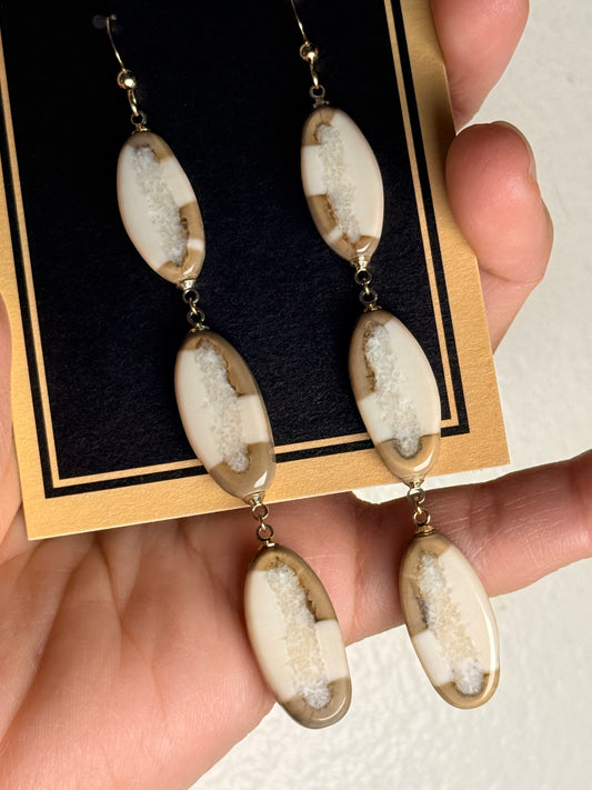 Trilayer Fossilized Ivory Earrings