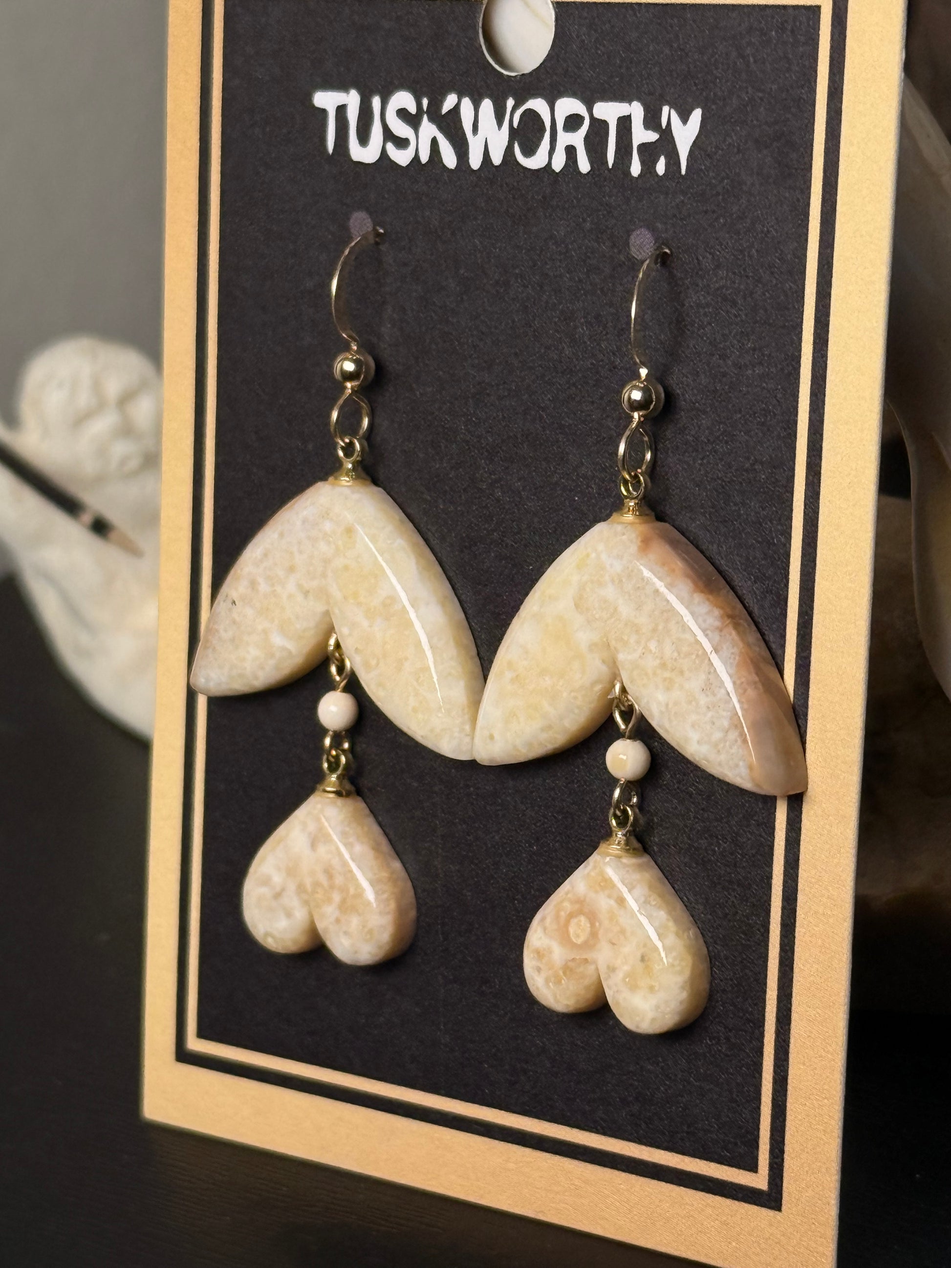 Ivory Heart Drop Earrings